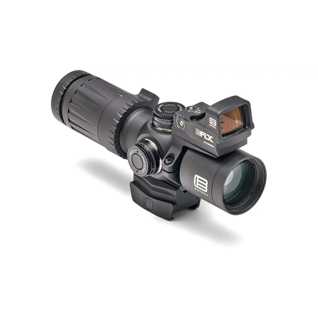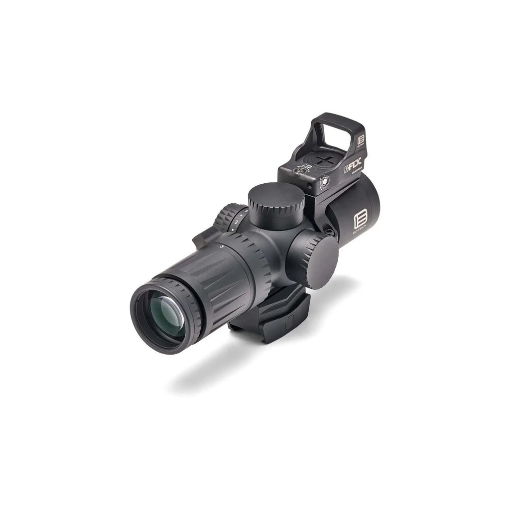 The EOTech Vudu 3-9x32 SFP Ultra Short HC1 Reticle (MOA) Integrated Mount w/EFLX Sight is a compact and versatile riflescope designed for precision shooting. With a length of just 6.8 inches and weighing approximately 16 oz, it is constructed from aircraft-grade aluminum, ensuring durability while remaining lightweight. The scope features a second focal plane (SFP) design and is equipped with an illuminated HC1 MOA reticle, offering 10 brightness settings for optimal visibility in various lighting conditions. Its 3-9x magnification range provides versatility for both close-quarters and mid-range engagements. The integrated mount is compatible with mini-ACOG® mounts, enhancing its adaptability to different firearms. Additionally, the package includes the EFLX® mini reflex sight, which can be mounted atop or at a 45-degree offset to facilitate rapid target acquisition. This riflescope is engineered to withstand harsh environments, being fog, water, and shock-resistant, making it suitable for a wide range of shooting applications.